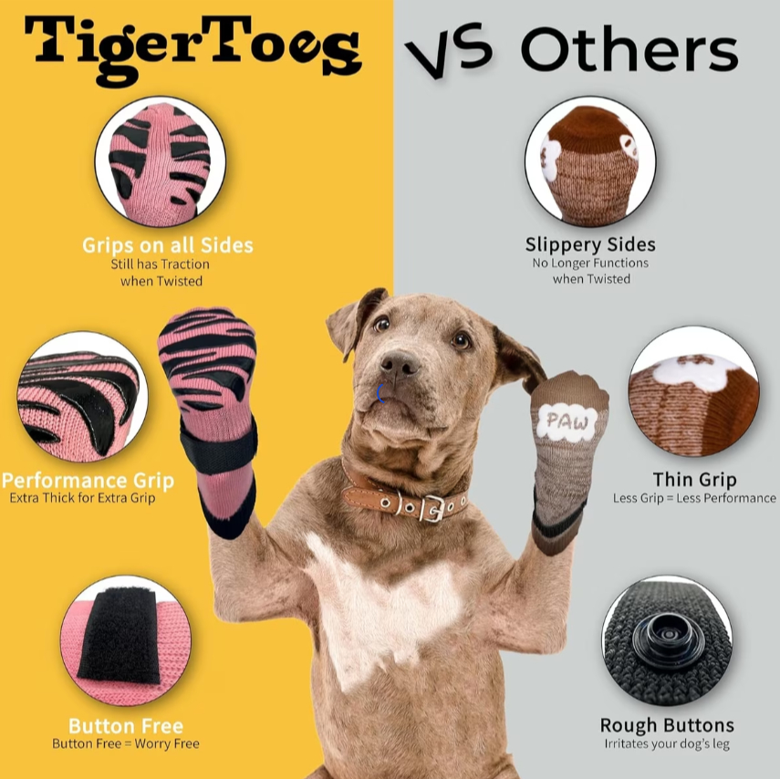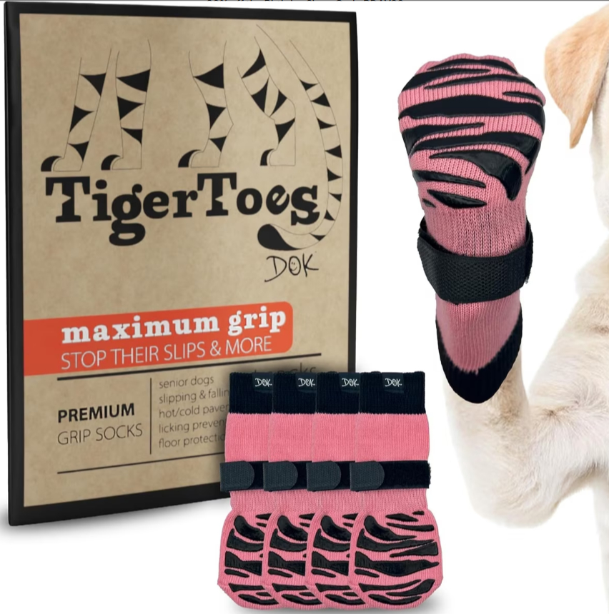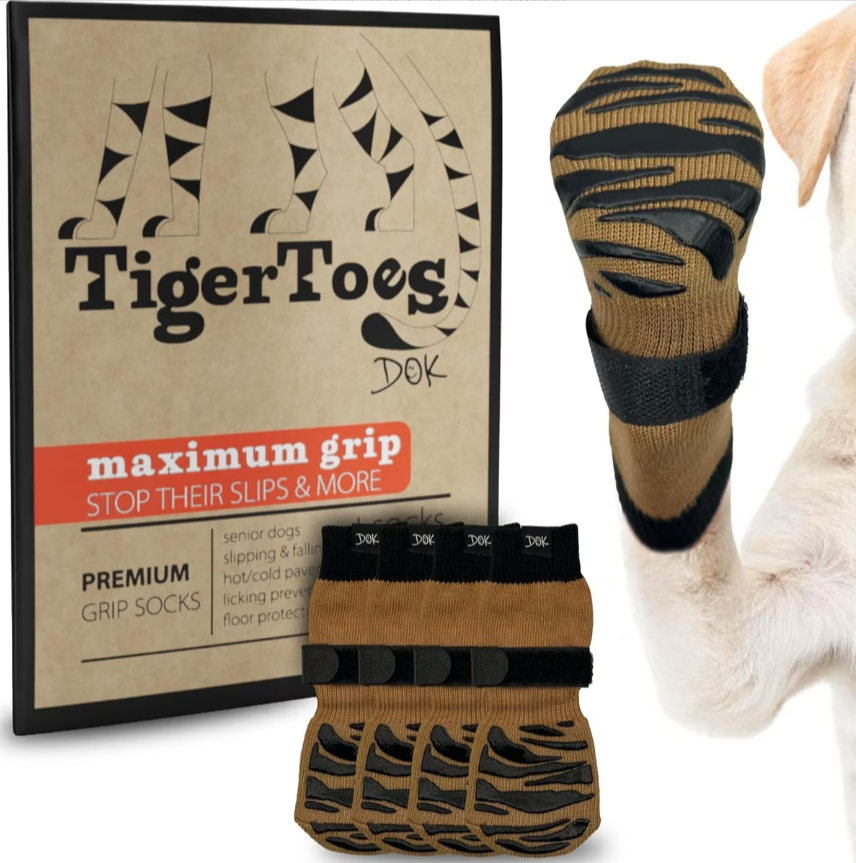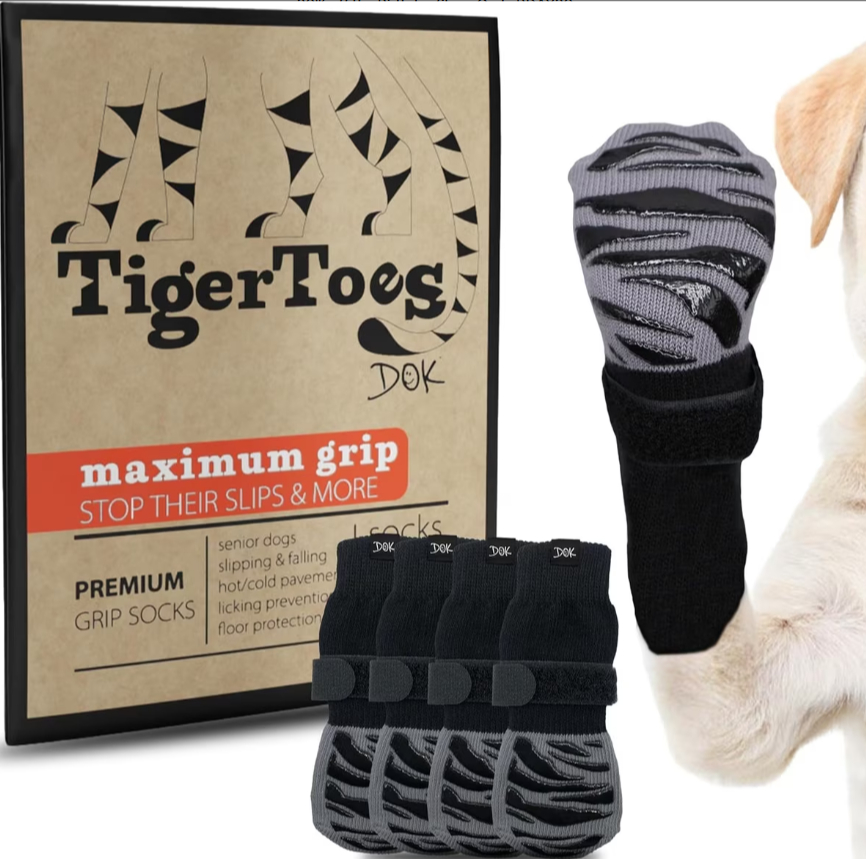 Give your Tripawd no-slip walking with DOK TigerToes Anti-Slip Senior Dog Socks with extra thick grip for stability, and mobility on slippery floors and stairs.