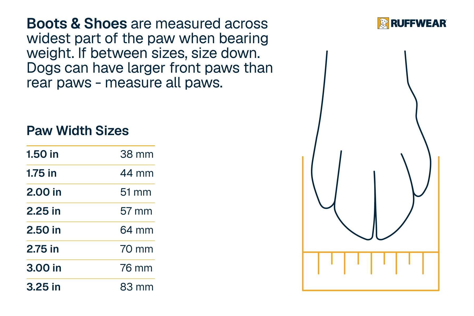 Be sure to review the Ruffwear dog boot sizing video below and measure carefully before you order.
